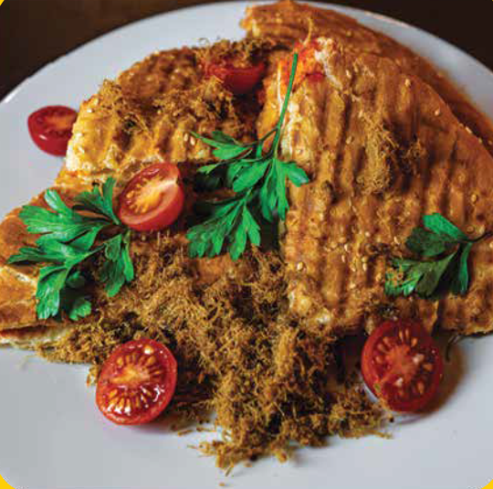 Ćebata, pesto sos, piletina, sir, kečap, majonez